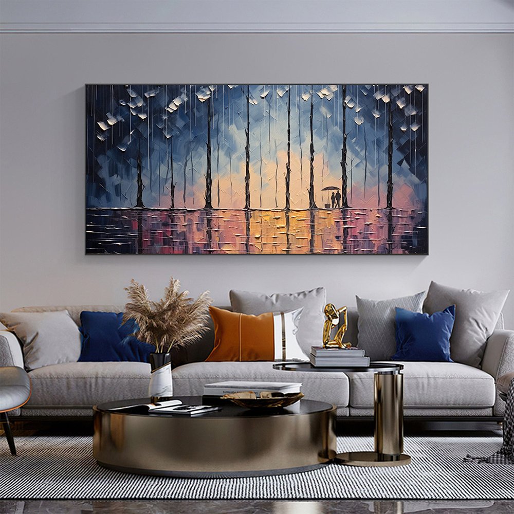 Hand Painted Oil Painting Large Abstract Rain Scenery Oil Painting on Canvas Original Forest Painting Texture Wall Art Living room Home Decor Bedroom