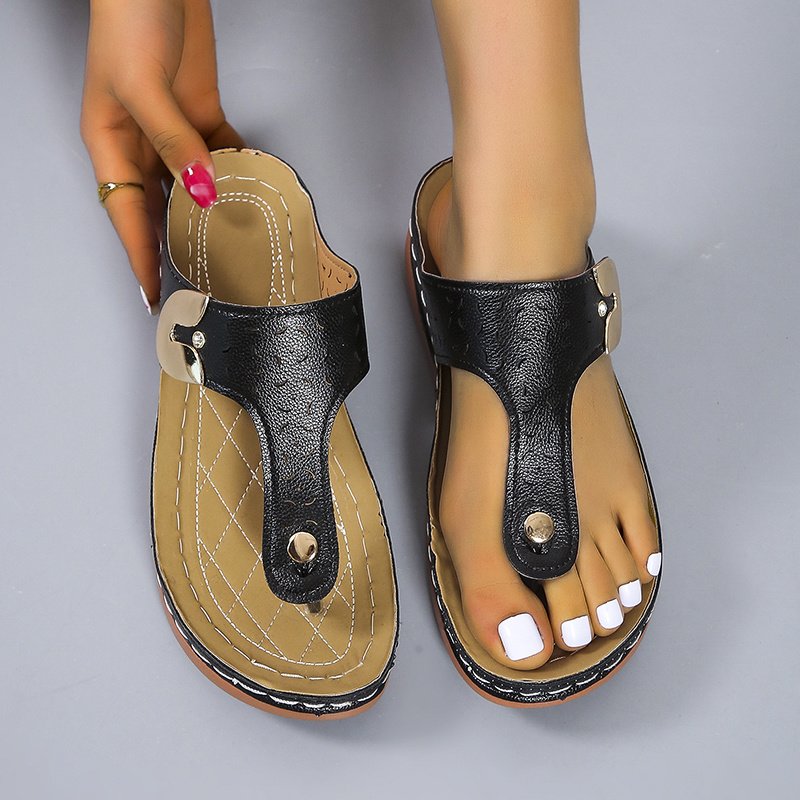 Home > Lucyever Fashion Metal Decoration Wedges Slippers Women 2022 Summer Clip Toe Sandals Woman Plus Size Thick Sole Flip Flops 43