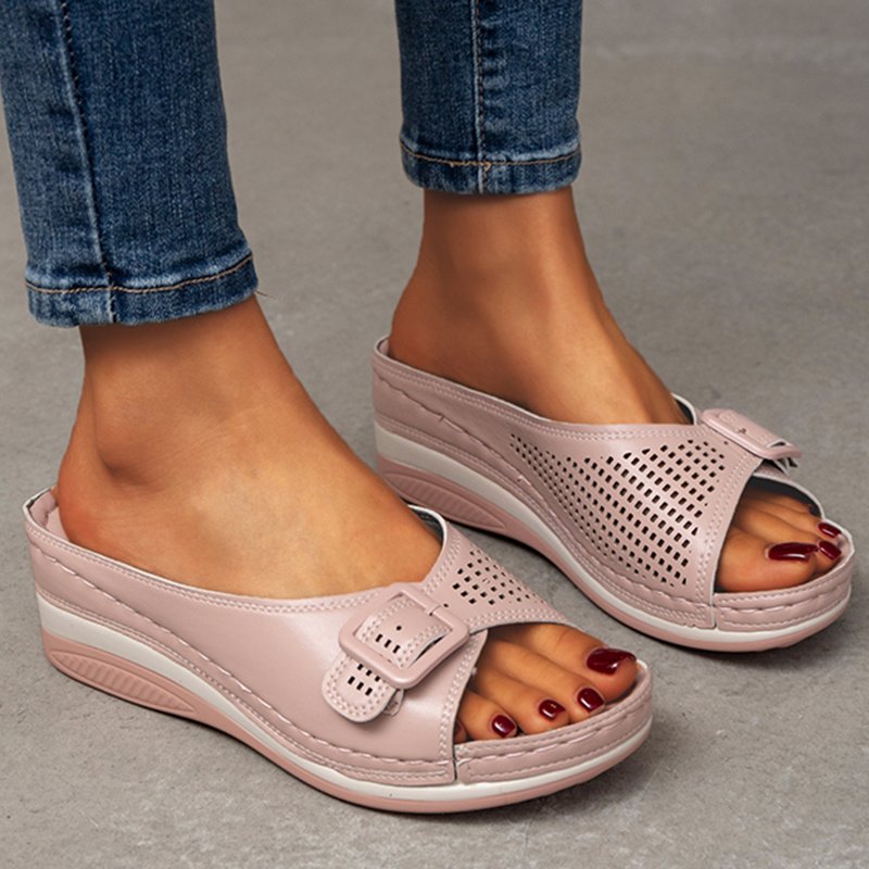 Home > Lucyever New Plus Size 43 Wedges Slippers Women 2022 Summer Buckle Peep Toe Sandals Woman Comfy Non Slip Beach Flip Flops Female