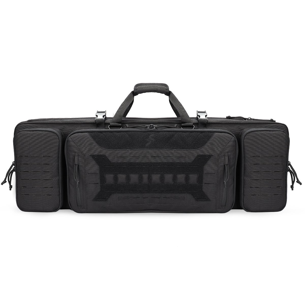 Durable Construction Material: Constructed by heavy-duty 600D nylon fabric exterior & interior. Padded on all side for increased protection. Removable protective pad keep your valuable firearm from wear also can be used as shooting mat.Safe & Spacious: Dual lockable zippers keep your firearms safe; 2 locks included in the package. Holds 2 rifles and 2 pistols; ample storage in the front for your range accessories. Molle compatible webbing for customization.Professional Rifle Bag: Rugged ballistic pack cloth construction; extra 2 outside accessory pouches fit all your need. Portable removable backpack w/storage pouches. Double stitching construction workmanship solid.Hold 2 RifleRefined Design & Functional: Double rifle case with more refined design; multiple compartments inside and out provide storage for just about anything you’ll want to carry. Fully customizable web and loop platform can carry all your other tactical accessories.